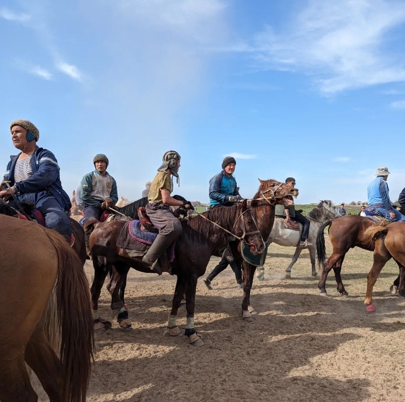 Всадники соревнуются за обезглавленного козла и должны привести его избегая своих противников в «круг правосудия». Соревнования такого типа в Узбекистане встречаются не так уж много. Они проводятся в особых случаях, таких как Навруз, Восточный Новый год. Туша обезглавленного козла служит своего рода мечем.Гости смогут посетить соревнования в марте, во время празднования Нового года (Навруз) в Центральной Азии. . Всадники собираются на старте. Рефери бросает тело козла на арену к ногам лошадей. Всадники бросаются вперед и каждый пытается приблизиться к туше. Тот, кто его поймает, убегает с победным криком. Все гонятся за ним. Его противники преграждают ему путь и любой ценой хотят отнять мяч. Кто пересечет финишную черту с тушкой, тот под аплодисменты станет победителем. Раньше для игры специально отбирали лошадей. Вся страна чтит и уважает победителей.