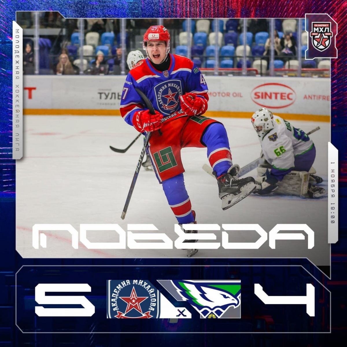 Сегодня в домашнем матче регулярного этапа Молодёжной хоккейной лиги тульская «Академия Михайлова» встречалась с «Капитаном» из Ступино. Наша команда одержала победу со счётом 5:4. Первый период остался за гостями: после сирены на табло 2:1 в пользу «Капитана». Во втором периоде точные броски Данилы Булатова и Михаила Лисенкова вывели «Академию Михайлова» вперёд - 3:2. В самом начале третьего периода Герман Шуленин увеличил преимущество туляков - 4:2. Казалось, победа хозяев близка. Но «Капитан» сначала сократил отставание, а на 10-ой минуте третьего периода счёт сравнял - 4:4. Но за десять секунд до финальной сирены нападающий «Академии Михайлова» забил шайбу и принёс победу своей команде в напряжённом матче - 5:4. В следующей игре туляки на своём льду примут команду «СКА-ГУОР Карелия» из Кондопоги. Игра пройдёт 4 ноября, начало в 17.00.