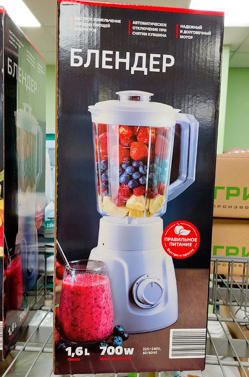 Привезли Блендер электрический, мощность 700Вт. Такая мощность позволит измельчать, взбивать и перемешивать свежие и замороженные фрукты, овощи, а так же и более твердые продукты, типа орехов. Вы сможете быстро и без особых хлопот приготовить фруктовое смузи или суп-пюре из овощей