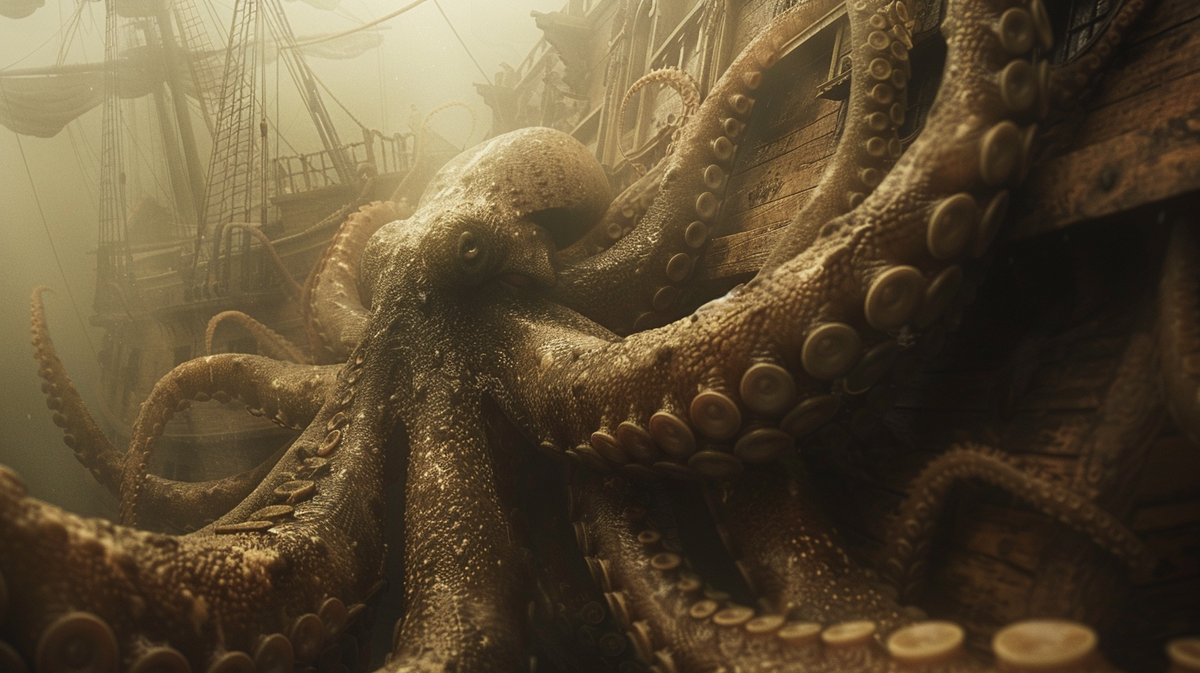 Он выныривал из глубин и своими огромными щупальцами оплетал корабль и утаскивал его под воду. Все усилия освободиться от мощного захвата морского монстра оказывались тщетными.