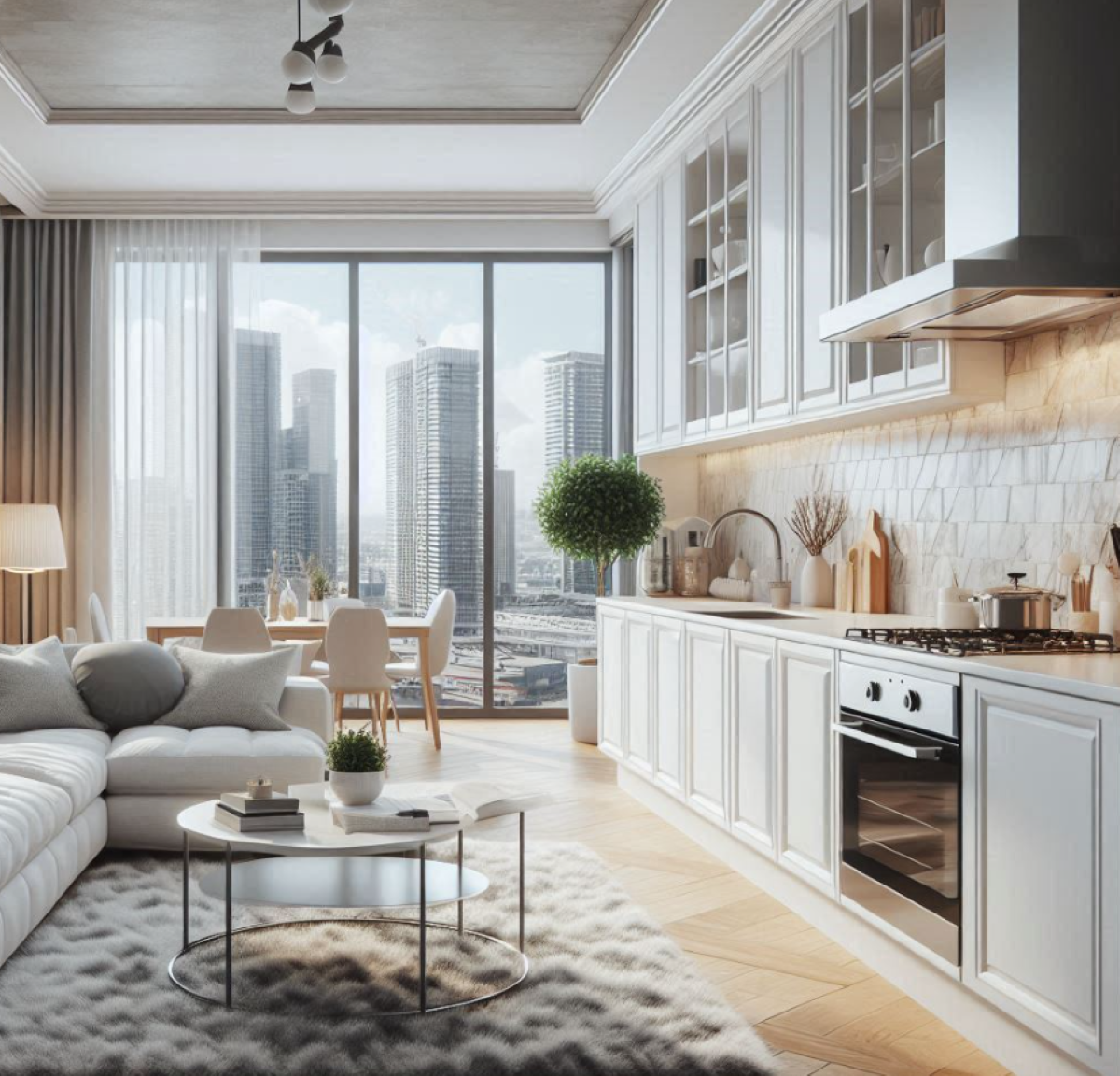 Для семьи оптимальным вариантом станет европланировка с просторной кухней-гостиной. Во-первых, такое пространство отлично подходит для совместных обедов и праздничных мероприятий. Даже если у вас маленький ребенок, и вы предпочитаете спокойную домашнюю атмосферу, в будущем вы можете захотеть приглашать своих друзей. Во-вторых, европланировка отличается гибкостью: при необходимости зону гостиной можно преобразовать в небольшую дополнительную спальню или организовать там рабочее место. Такая планировка позволяет легко подстраиваться под новые потребности семьи, обеспечивая максимальный комфорт.