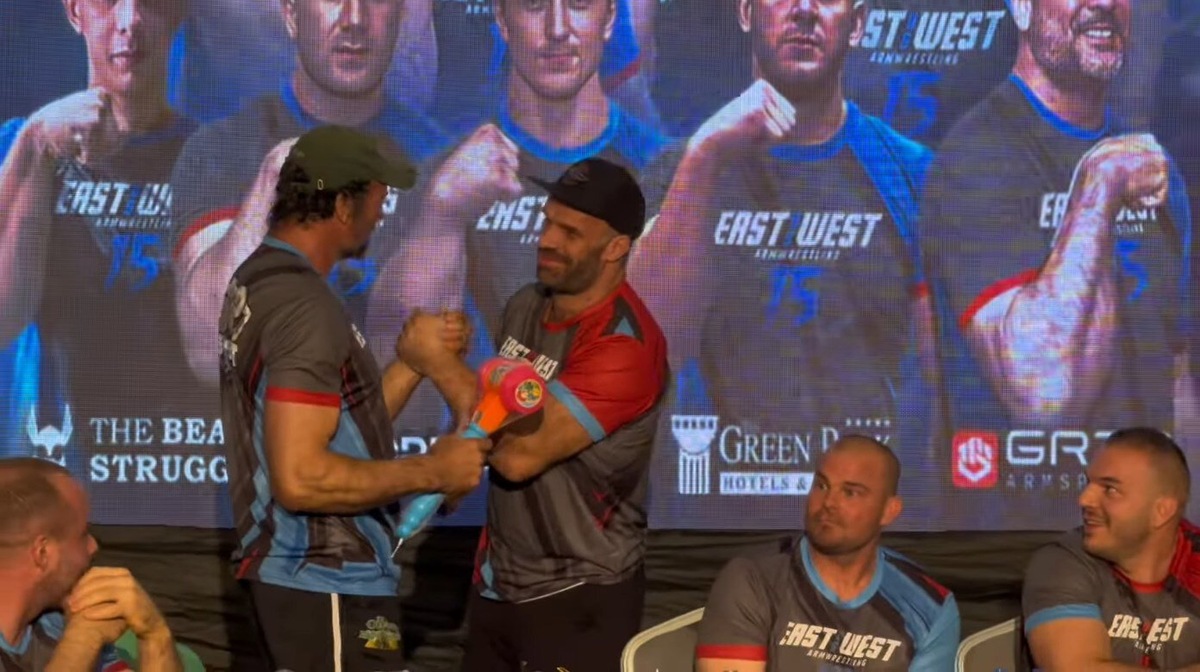 Армрестлеры встретились на пресс-конференции перед East vs West 15 в Стамбуле. Ранее Ларратт призывал Цыпленкова вернуть трофейный «Молот наследия», так как россиянин редко участвует в турнирах.