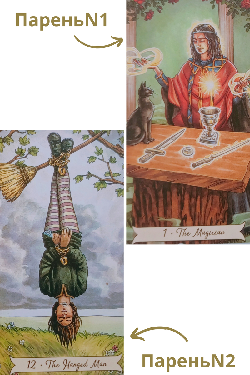 Запросы к тарологу бывают очень разнообразными и, зачастую, неожиданными:) Обратилась девушка, начала встречаться сразу с двумя парнями, пока серьезно не воспринимает никого из них, но для нее важен хороший секс. Ей хотелось узнать, каким каждый из них будет в постели. Назовем их Парень№1 и Парень№2. Итак, Праень№1 - Маг. Харизматичный мужчина, очень опытный и умелый, в постели будет хорош, отличный любовник. Парень№2 - Повешенный. Ну что сказать... Даже судя по картинке, и не зная значения карт, уже становится понятно, что ориентация у него в пространстве не совсем та, что ожидается во время секса. Этот персонаж находится глубоко в себе, погружен в размышления и оторван от внешнего мира. До взаимодействия с другими людьми ему дела нет... Через месяц девушка вернулась с другим вопросом и поделилась обратной связью. А любому тарологу очень приятно и крайне полезно знать, на сколько точно проигрался расклад. Первый парень оказался на высоте, у второго дело до дела не дошло...