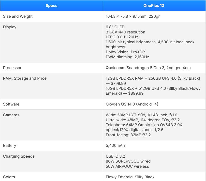 Краткое описание OnePlus 12