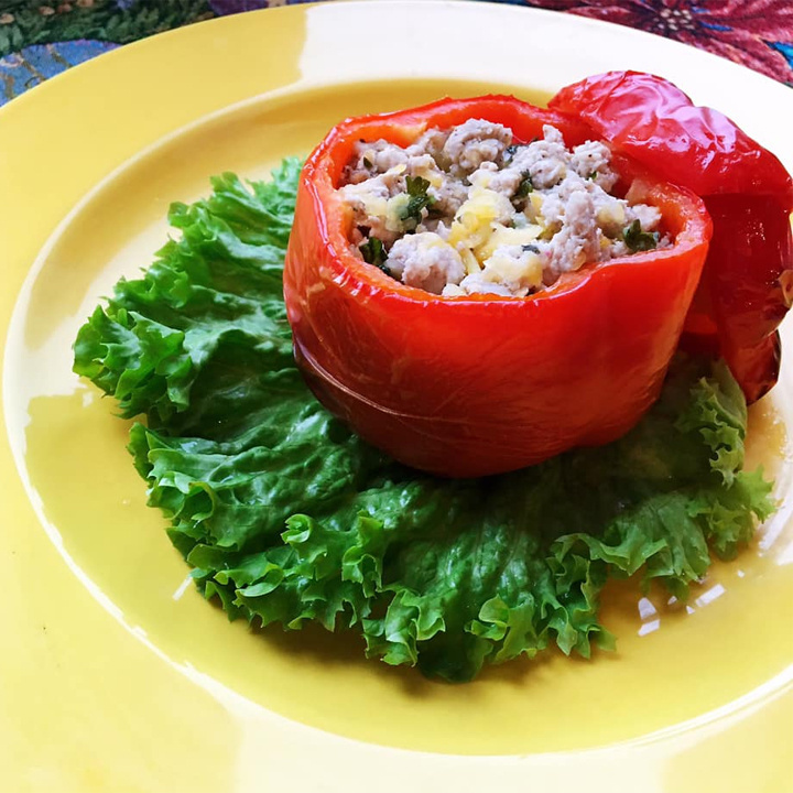 Фаршированные перцы, пожалуй, одно из самых простых и вкусных блюд домашней кухни. Их можно тушить в соусе или бульоне, а можно запекать в духовом шкафу. В качестве начинки подойдёт любое диетическое мясо - курица, индейка, кролик. В зимнее время его хорошо смешивать с корнеплодами, например, репкой. На крупных перцев: ✔ 500 г фарша из кролика; ✔ 2 репки; ✔ Пучок зелени; ✔ Полстакана бульона или кипячёной воды; ✔ Масло растительное (2 ст. л.); ✔ Соль, перец. Перцы хорошо моем, отрезаем «крышечки», очищаем от семян. Фарш слегка обжариваем в небольшом количестве масла, добавляем натертую на крупной терке репу, 0,5 стакана бульона или просто кипячёной воды, соль, перец и тушим 15 минут под крышкой. Режем зелень, смешиваем с фаршем. Готовой начинкой заполняем перцы, закрываем «крышечками», выкладываем в форму и отправляем в разогретую до 180 градусов духовку на 20 минут. Готовые перцы должны получиться мягкими и сочными. Достаём их из духовки и раскладываем по тарелкам. Примерное КБЖУ на 1