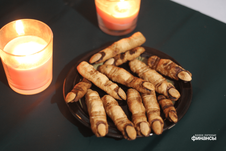 Предлагаем похулиганить и испечь по-настоящему жуткое печенье «Ведьмины пальчики». Несмотря на внешнюю сложность, сделать и оформить его под силу каждому, даже ребенку. А ингредиенты можно купить в ближайшем магазине. Для выпекания 30-40 пальчиков нужно подготовить 100 граммов сливочного масла или маргарина для выпечки (мы использовали второе и потратили 63 рублей на пачку), 100 граммов сахара (обойдутся в 8 рублей), одно яйцо (10 рублей), 300 граммов пшеничной муки высшего сорта (21 рубль за это количество), чайная ложка разрыхлителя (9 рублей за пакетик), щепотка соли и ванилин (10 рублей). Для оформления припасите миндаль — 50 или 100 граммов в зависимости от того количества печенья, которое хотите сделать (мы отдали 100 рублей за 50 граммов); одну дольку темного шоколада (плитка обошлась в 98 рублей) и пару чайных ложек какао (120 рублей за пачку весом 100 граммов). Также нам понадобится обычная художественная кисточка. Мы потратили на это печенье 430 рублей и гарантируем вау-эффек