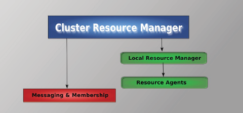 - Кластеронезависимый уровень - на этом уровне располагаются сами ресурсы и их скрипты, которыми они управляются и локальный демон, который скрывает от других уровней различия в стандартах, использованных в скриптах (на рисунке зеленый).