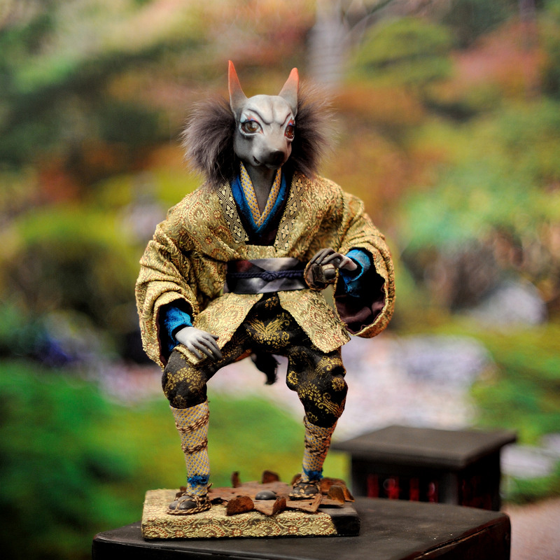 В коллекции нашего проекта есть две куклы, изображающие Инугами (от японских слов «ину» — собака и «ками» — божество, дух) — пес-бог или дух пса - фамильяр или личный дух. Считалось, что фамильяры служили и помогали колдунам и ведьмам по хозяйству, в различных бытовых делах, но также при случае могли помочь околдовать кого-нибудь. Фамильяр обладал разумом на уровне обычного человека, имел собственное имя и чаще всего принимал форму животного. Так как они выглядели как обычные животные, то они вполне могли шпионить за врагами хозяина. Некоторые колдуны полагались полностью на фамильяр, как если бы он был их ближайшим другом. В людных местах он принимает форму собаки, чтобы не привлекать к себе внимания. Истинная же форма представляет собой мумифицированную голову пса, одетого в церемониальное одеяние. Эта голова хранится в тайном святилище в доме хозяина инугами. Могущественные маги создавали инугами, которые преданно служили своим хозяевам и выполняли все их прихоти. Довольно часто они