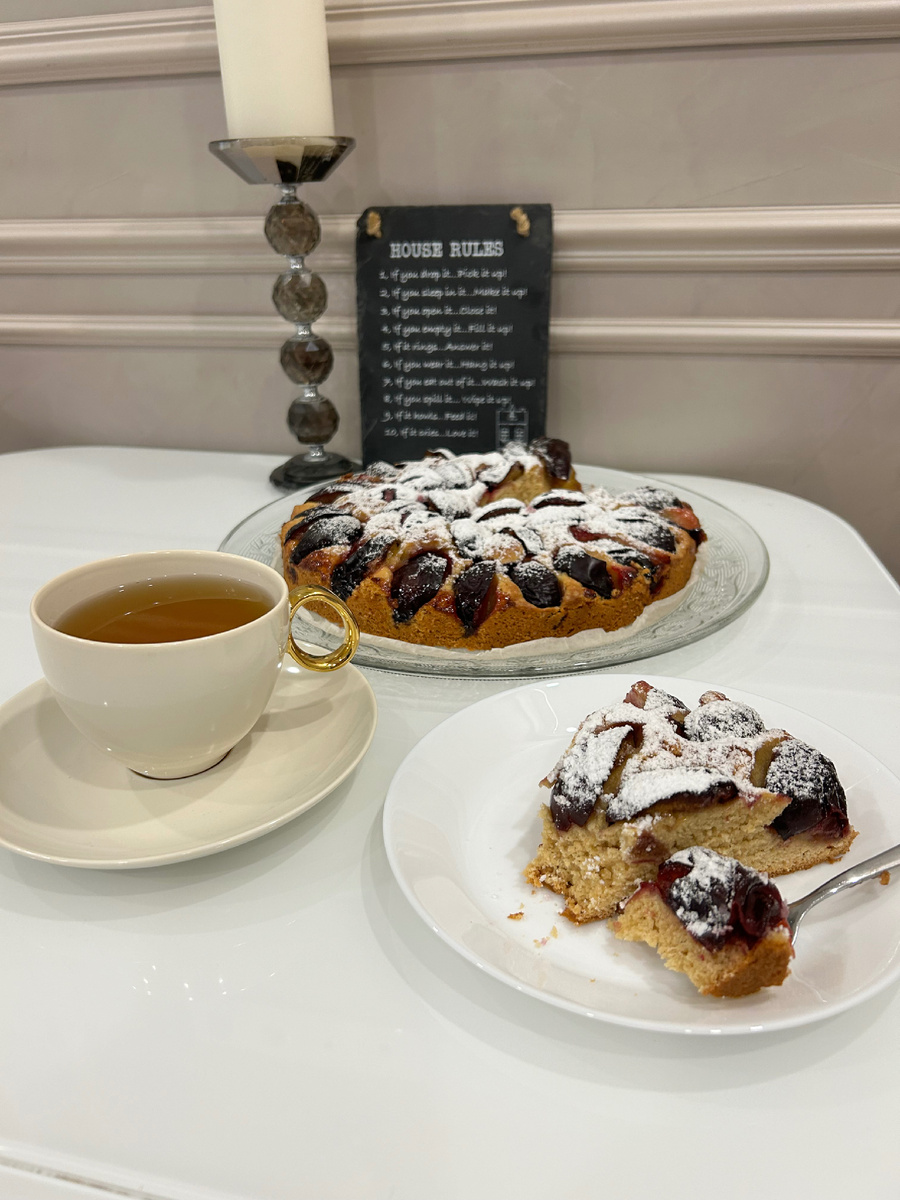 К домашнему чаепитию очень подойдет знаменитый и несложный рецепт пирога из газеты Нью-Йорк Таймс. Его можно подать как самостоятельный десерт или с шариком ванильного мороженого или с заварным кремом. Подарите себе это удовольствие!. Можно экспериментировать с сезонным фруктами, печь не только со сливами. Можно взять ягоды, яблоки, нектарины, персики. Я готовила с айвой и ревенем, очень неплохо с ней получилось. Можно также поэкспериментировать со специями и добавить имбирь, цедру, карадамон, розмарин. Кстати, на счет сахара. Впервые этот рецепт был опубликован в газете в 1983 годы и в нем был один стакан сахара. Когда рецепт публиковали в последний раз в 1989 году, в нем было ¾ стакана сахара. Что снизило калорийность пирога. В рецепте говорится, что перед тем, как отправить пирог в духовку, его нужно посыпать сахаром с корицей. Так вот, однажды я ошиблась и всю корицу добавила в тесто. Я вам скажу, что мне так понравилось гораздо больше и теперь всегда корицу кладу в тесто, а фрукты