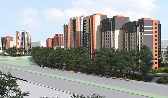 На территории разместятся несколько восьмиэтажных домов серии М464-У1 от «МАПИД», высотки переменной этажности (12-14-16) в конструкциях Минского домостроительного комбината и 18-этажные «столбики» «мапидовской» серии М111-90. Вдоль Аэродромной выделяется зона жилья повышенной этажности с отдельно стоящими объектами культурно-бытового назначения. Такое решение будет перекликаться с высотностью существующих кварталов «Минск Мира». Вдоль ул. Сенницкой запроектированы детский сад и школа. Всего на территории разместится 72 тыс. кв. м жилья, это примерно 1 тыс. квартир, рассчитанных на 2,4 тыс. человек. Проектным решением предусматривается и два многоуровневых паркинга по 300 машино-мест.