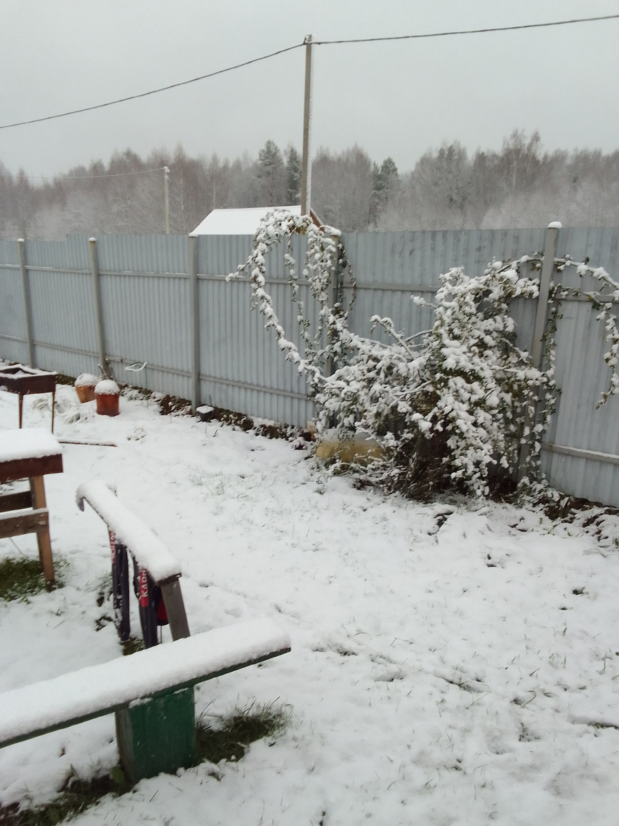 Ноябрь. Второй день зимы. Суббота. Снег выпал вчера, но к вечеру практически растаял. Однако сегодня утром снежный покров см. 6-7 накрыл землю основательно. И зима, скажу я вам, к нам пришла неожиданно. Пару дней назад бегала по саду с лопатой и тачкой, щипала цыплятам зеленую травку. Куры и гуси рвались на волю из птичника. Сегодня желание барахтаться в снегу у птичьего семейства да и у меня отпало. Высунули было носы и обратно восвояси. Увы! Мы потихоньку готовим себя к "перелету" на квартиру. Пока морально. Однако переезд не за горами. Холодно, жилье недоутеплено. Взгруснули. Раставаться с природой не хочется. Жаль, но будем приезжать на выходные. А на неделе забегать покормить живность. В прошлом году по очереди бегали - сюда и обратно. Лорка грустит. Снег ей не нравится. Съежившись от холода, устроилась на спинке дивана на веранде и упрямо ждет лета. А за окном даже не весна. Снегопад протрезвил и напомнил: пора готовить туи к февральскому солнцу. Делать защит