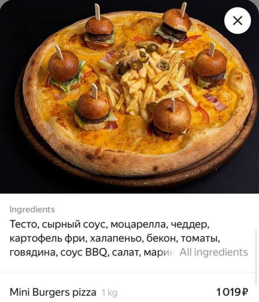 Пицца из четырёх бургеров и картошки фри: питерский гастрономический взрыв.