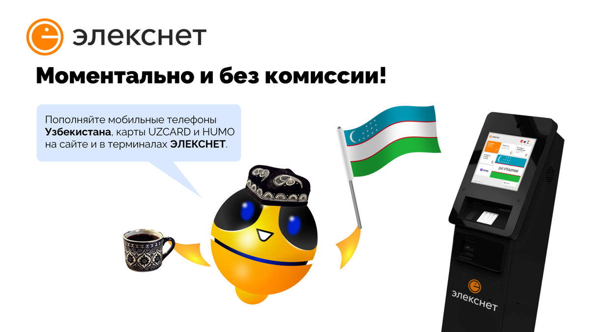 ЭЛЕКСНЕТ запустил моментальные денежные переводы на карты платёжных систем Узбекистана Humo и UzСard. Переводы без комиссии можно совершить онлайн на сайте или в 4 500 терминалах ЭЛЕКСНЕТ в 72 регионах РФ. Дополнительно доступно пополнение мобильных телефонов Узбекистана. Минимальная сумма одной транзакции – 100 руб.