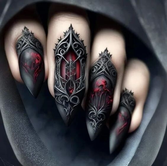 Подборка маникюров созданных с помощью нейросетей. Готика на ногтях. Готический маникюр. Готическая подборка 2024