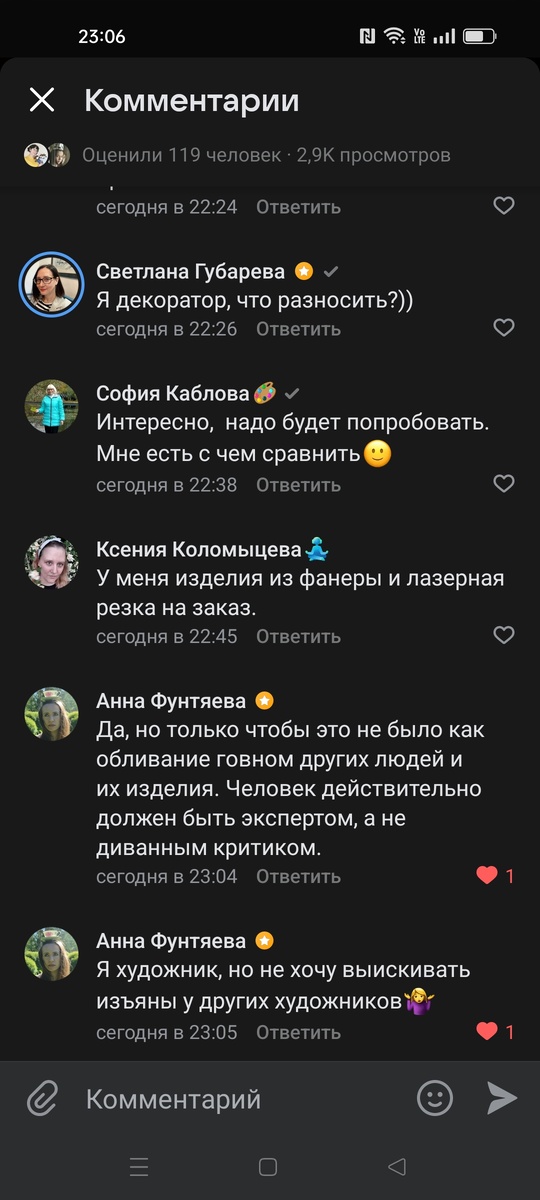 Вчера увидела это и смеялась. Это в группе по продвижению ВК. И у успешных авторов бывают промахи и то, что не заходит у читателей. Автор группы предлагала авторам предлагать в платный раздел так называемые разборы и говорит, что они популярны. А что такое разбор? Предложила написать идею, а что могли бы разбирать читатели - ведущие преимущественно рукодельных блогов. Автор этого сообщества рассказывала на своих бесплатных вебинарах, что в своей платной работе проводит разбор сообществ. Она эксперт и опытный человек именно в этих вопросах, учит людей продвигать и продавать. Не все знают, что она это делает, возможно, она не объяснила поэтому люди отвечали, как подумали. Кто-то написал: "А что надо разносить"? Сама идея таких экспертных высказываний и мнений подойдёт только для сообществ с мастерами-экспертами или блогов с так называемым "культом личности", - специалиста должны знать и уважать. Также я согласна с художницей. Мой принцип - не поступай с другими так,