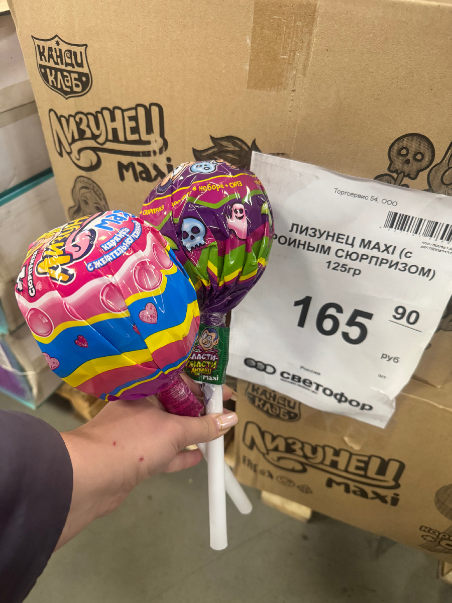 Здравствуйте! В этой статье хочу рассказать вам о сладком сюрпризе из магазина светофор, стоит ли его брать? Что внутри? А вы, посмотрев мою статью, примите свое решение. Мы тратим за вас, время, деньги и нервы! Вот такой сюрприз сегодня на обзоре! Наверняка вы видели такой не раз в светофоре!☺️ Выглядит он как огромный чупа-чупс и дети постоянно меня просили его купить! Цена за 125 г - 165,90₽! Начало конечно такое себе, на этикетке все начинается с Е…🤦♀️ Но посмотрим, что будет дальше… Кстати он очень легко открывается!👍 Когда снимаем фантик, внутри нас ждёт такой пластмассовый футляр..Плюс, что ничего не высыпается! А вот внутри футляра уже есть площадка с дырочками, в которых всунуты чупа-чупсы. И вот, что интересно… дырочек по окружности 8, а чупиков 7… как будто один не доложили… но тут видимо такой дизайн. Помимо чупиков в наборе еще есть: жвачка дракон, жвачка яйцо и игрушка. Вот более наглядно, что внутри! 👇👇👇 Жвачка.. конечно коробочка у нее прикольная, в виде драконч