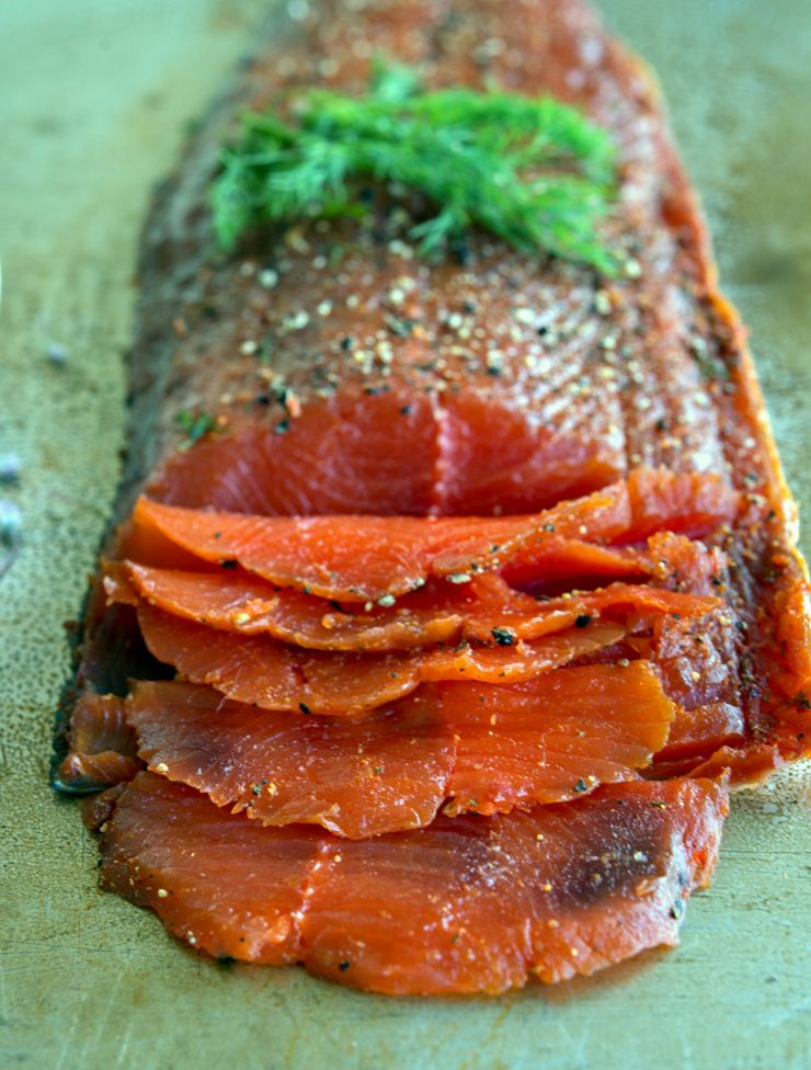 Перед нарезкой убрать излишки соли и укропа, рыбу можно смазать маслом и немного подморозить для ровных ломтиков.
