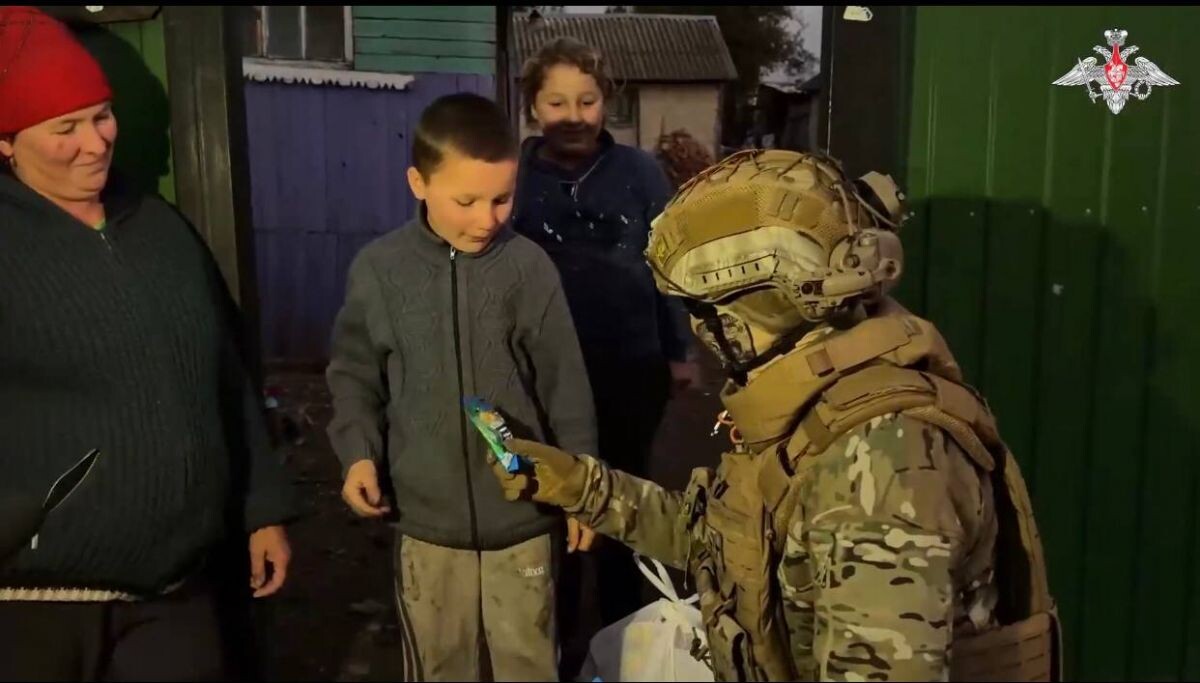 Поэтому в эти населенные пункты гуманитарную помощь доставляют десантники и сотрудники военной полиции группировки войск «Север». Военный РФ познакомился с семьей, где есть дети. Мальчику Виктору передал сладости для него и брата. А вот их маме целы пакет с продуктами. - Берегите себя, - говорит военный. Вите семь лет. Он пообщался с военнослужащими и поблагодарил за внимание. Селяне берут продукты, радуясь, что их не забывают. Они благодарят российских воинов.