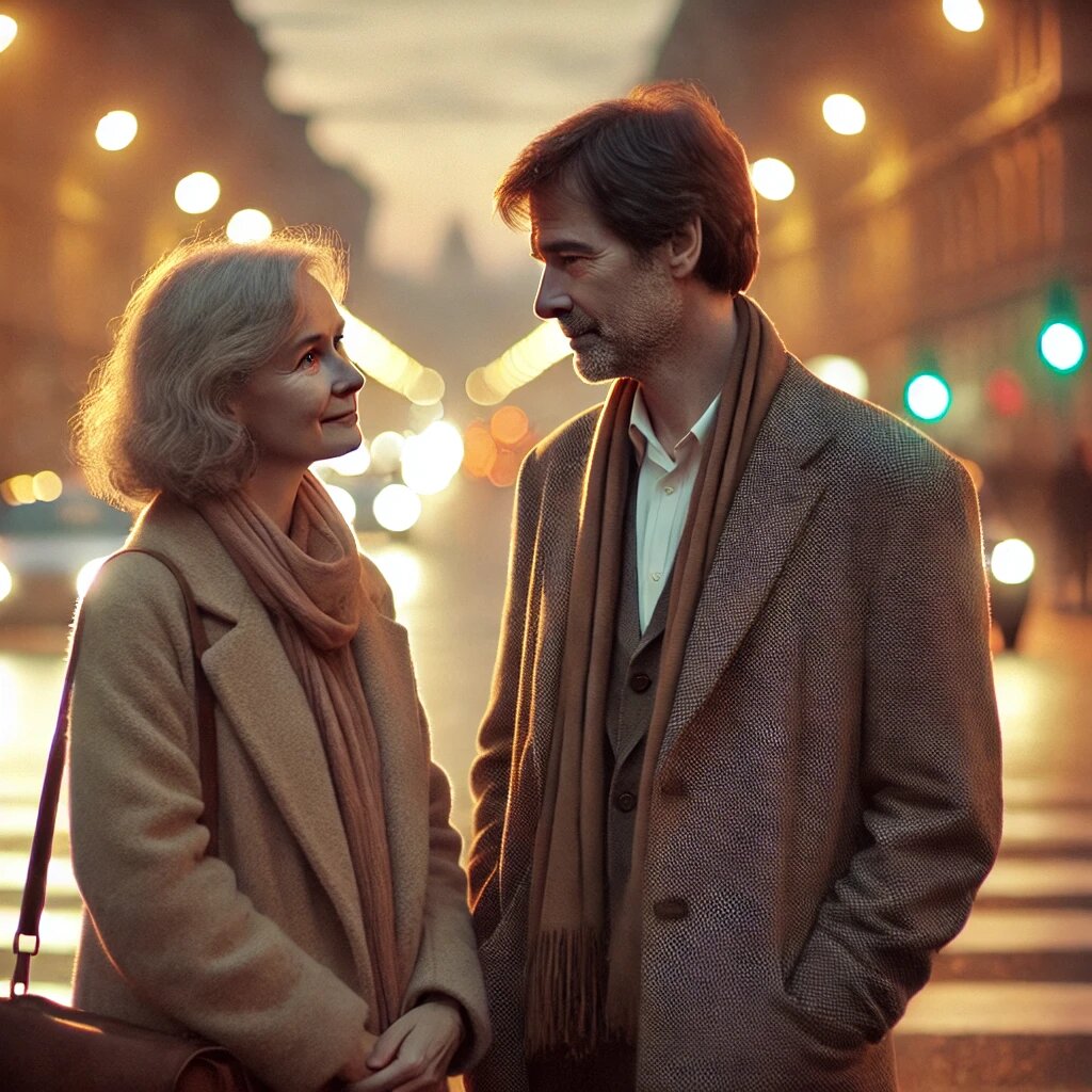 Шумной мегаполис не знал тишины — люди, машины, огни, неоновые вывески. Она едва успела выбежать из кафе, поправляя плащ, как столкнулась с высоким мужчиной, стоявшим у остановки и смотревшим на неё. — Оля? — прозвучало удивленно, и в этом голосе она узнала кого-то родного. Сердце защемило, и почти забытое тепло разлилось по телу. Это был он — Илья. — Привет… — голос предательски дрогнул, как будто она снова стала той молодой девушкой, которая волновалась при встрече с ним. Прошло почти двадцать лет, и в её жизни давно не осталось места прошлому. Но, глядя на него, она вдруг почувствовала, что эти годы исчезли, и перед ней был тот самый человек, который когда-то был для неё целым миром. Они молча стояли, вспоминая, как за это время изменилась их жизнь. Оля видела его взгляд, в котором смешались удивление и что-то ещё, отголоски нежности и… грусти? Она не решалась спросить. Мимо проезжали автобусы, люди спешили, и казалось, что мир не замечает их короткой остановки. — Пойдём прогуляемс