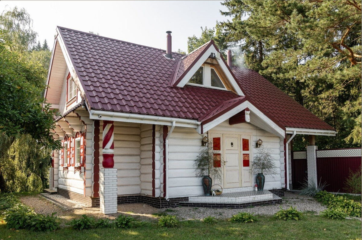 Сегодня мы отправимся в гости к Наталье Балашевской, хозяйке необычного дома, где русский сказочный стиль обрел новое дыхание. Уже с порога этот дом словно переносит нас в мир старинных легенд и былин, и все благодаря его самобытной архитектуре. Резной фасад и игра цвета Этот двухэтажный дом, будто прямиком из старинной сказки, в первую очередь привлекает внимание своим фасадом, где каждая деталь дышит традициями. Резные столбы напоминают детали пряничного домика. Легкий, словно кружевной, орнамент создает ощущение праздничности и уюта — каждая деталь продумана до мелочей, а сочетание белого и красного цветов создает стильный контраст. Наличники вокруг окон и дверей украшены резными фигурками матрешек и дополняют общий стиль, добавляя озорные нотки. Крыша, венчающая дом, выполнена в треугольной форме, а украшают ее стеклянные жар-птицы. Идея украсить кровлю возникла у Натальи неслучайно: жар-птица — символ надежды и возрождения — стала символом всего дома. Интерьер в старорусском стил