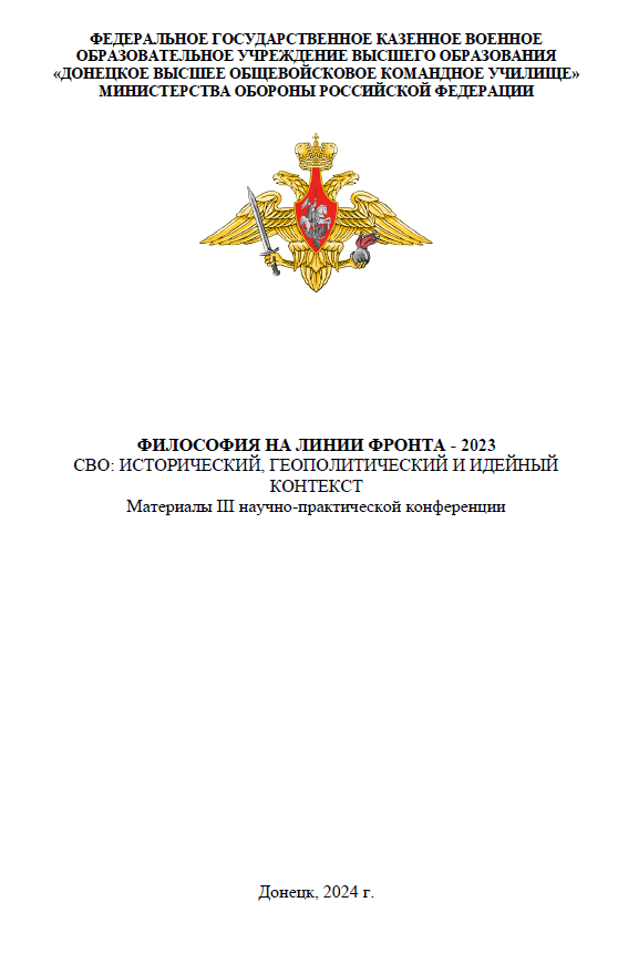В сборнике затрагиваются архи-сложные философские вопросы, например, проблема времени и темпоральности СВО (Власкина Т.Ю. Южный научный центр РАН), поднимаются вопросы об идеологическом взаимодействии с нашими союзниками (Курбасова Д. А. студентка 4 курса Сибирского института управления – филиала Российской академии народного хозяйства и государственной службы при Президенте Российской Федерации). Продумываются новые, пока еще неуютно чувствующие в нашей философии термины, например, "ментальная война" (Конюхов И.А. курсант 2 курса факультета систем и средств связи РВСН Филиала Военной академии Ракетных войск стратегического назначения имени Петра Великого в г. Серпухове; Соловьева Л.Н. кандидат философских наук, доцент, преподаватель кафедры военно-политической работы в войсках (силах). Много внимания уделяется проблемам борьбы с фашисткой идеологией при помощи философско-педагогических подходов (Кузнецов А.М. доктор исторических наук, доцент, доцент кафедры культуры Военного университета имени князя Александра Невского Министерства обороны Российской Федерации). Актуализируется взаимосвязь между войной и историчностью как элементами бытия (Кода Н.В. Кандидат философских наук, преподаватель кафедры истории зарубежной философии Российского государственного гуманитарного университета).