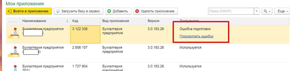 Ошибка при размещении базы 1С Бухгалтерия 3.0. на облачном сервисе 1cfresh.com (1С Фрэш) Ошибка подготовки