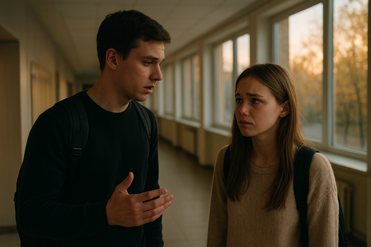Вчера Илья неожиданно пригласил её на серьёзный разговор после уроков. Она думала, что он хочет поговорить о планах на выходные. Но его слова поразили, как гром среди ясного неба.