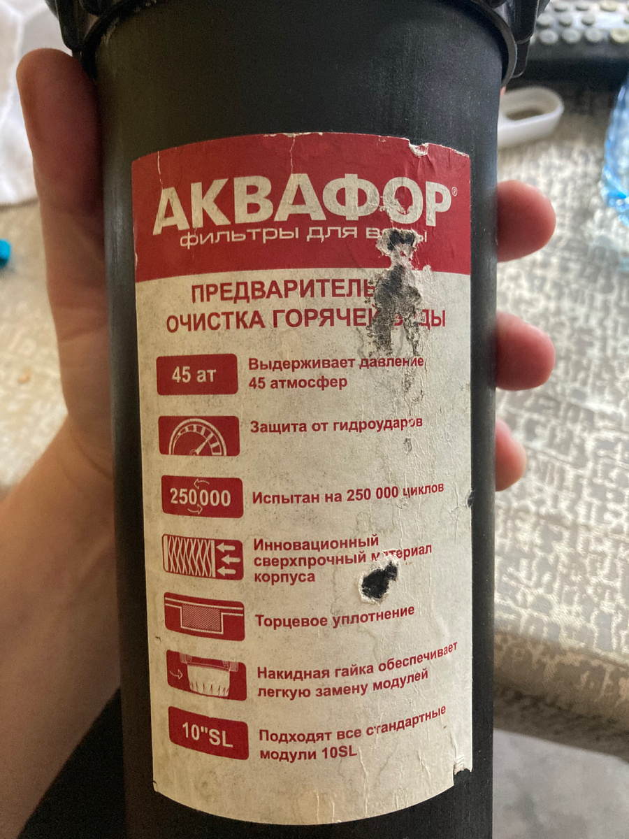 Что делать, если у вас плохая вода? -ФИЛЬТРОВАТЬ. Пока я не нашел лучшего решения. Сначала были установлены фильтры -сеточки грубой очистки, но толку от них не было, так как у меня не камни в смеситель сыпались, а ржавчина и гудрон с еще не пойми какими субстанциями выходила вместе с водой из крана. Скажу сразу: магистральные фильтры на 10SL нужны, работают, и вещь в принципе полезная, да и стоит не особо дорого. Изначально я поставил какой-то корпус ноунейм за 300 рублей на холодную воду, через пол года пластик пожух и стал колким, и я решил, что пора брать качеством. Купил прозрачный “Unicorn” для холодной и «Аквафор» для горячей. Оба корпуса работают уже больше двух лет. К прозрачному для холодной вообще вопросов никаких - все замечательно. К горячему «Аквафору» вопросы к насечкам и ключу: спроектировано дебильно, каждый раз для замены фильтрующего элемента приходится снимать корпус из магистрали. Вероятно, есть ключи по-лучше, или «Аквафор» сделал насечки на корпусе по-глубже