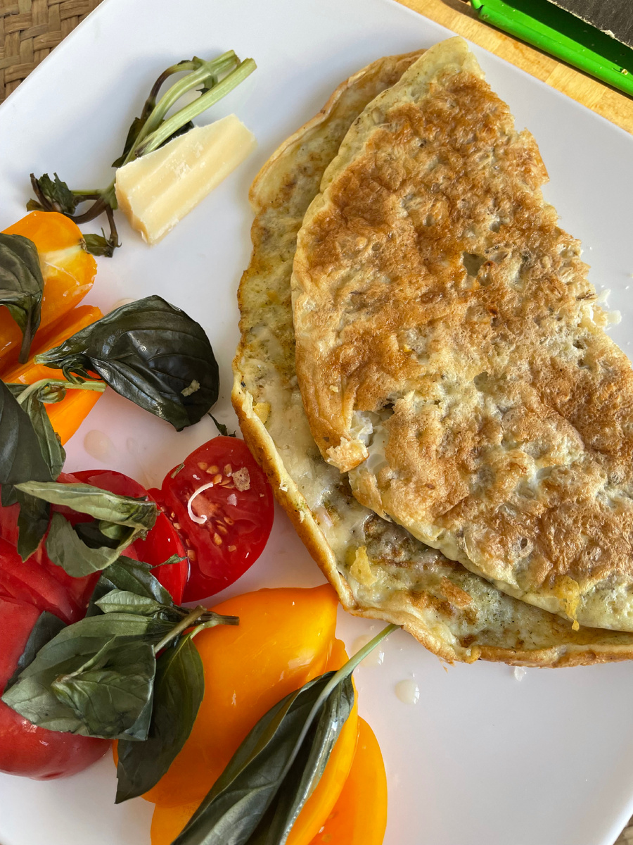 Овсяноблин - символ ЗОЖа, ПП и тому подобного, я же считаю, что правильное питание прежде всего должно быть полноценным и разнообразным. Я уже давно не в теме, но овсяноблин периодически появляется в моем рационе, например, в этот раз случился на завтрак с начинкой из пармезана и овощным салатиком. А рецепт есть у меня на канале))
