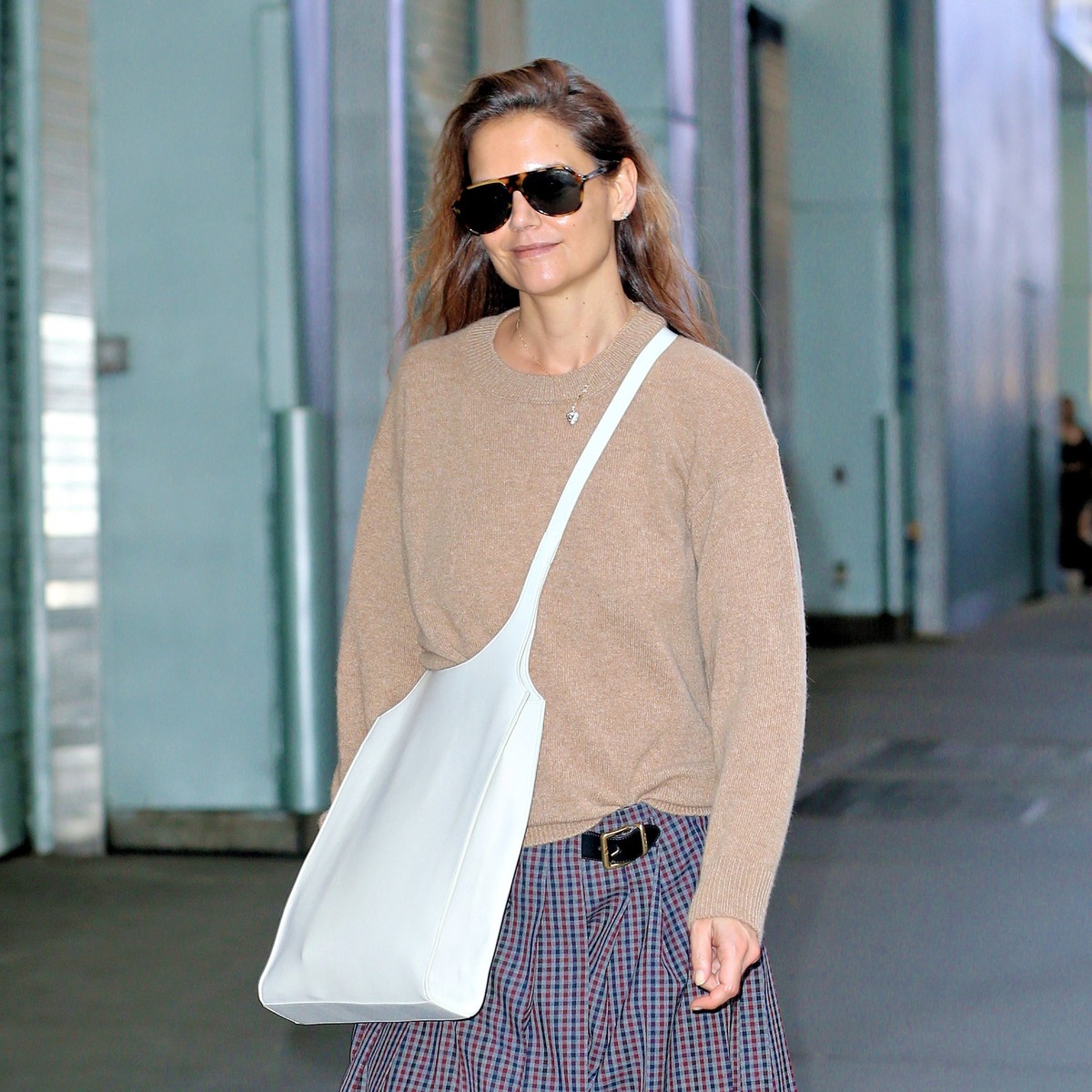 45-летняя Кэти Холмс была замечена папарацци в Нью-Йорке в идеальном для осени образе.