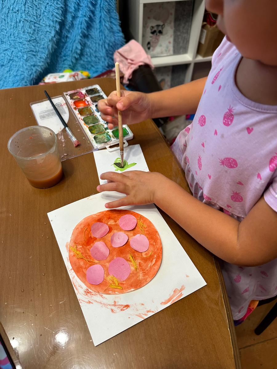 Мы уже несколько дней в Москве, доехали на машине. Но я ведь еще не все рассказала, что у нас происходило перед поездкой. Хотела показать, что Алина умеет делать не ходя в детский сад. Для меня детский сад — это больше услуга для родителей, чем развитие и социализация ребенка. Я не считаю сад злом, нет, главное, чтобы был адекватный воспитатель, который умеет общаться с детьми, кто не будет морально и физически унижать и оскорблять ребенка. Ведь именно от человека зависит многое, а не от места. Те, кому нужно выходить на работу, отдают ребенка в детский сад, у нас пока есть возможность, чтобы ребенок находился с нами дома или в поездках и жил по режиму семьи. Кто сомневается в том, что ребенок может полноценно развиваться не ходя в сад, вот, недавно делали с Алиной пиццу. Она командовала, а я только помогала. Идея сделать сыр из ниток тоже была ее, наверное в какой-то передаче увидела. Ну классная же, как настоящая. Что там еще дети в саду делают? Рисует, раскрашивает, считает, учит б