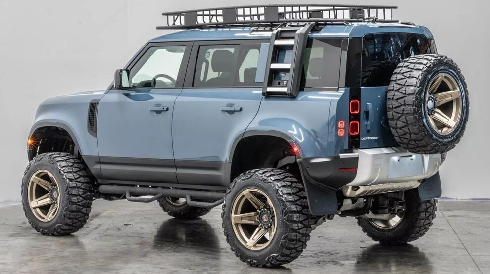Несмотря на агрессивный вид внедорожника, под его капотом стоит совершенно стандартный 2.0-литровый двигатель. Как выясняется, тюнинг-компания Apocalypse 6×6, известная своими мощными шестиколёсными проектами, охотно берётся и за традиционные четырёхколёсные автомобили. Одна из их последних сборок – Land Rover Defender нового поколения – выглядит безумно, благодаря запредельному лифту, дискам и шинам большого размера, а также другим внедорожным модификациям. Как это было. Первым делом на стандартный донорский Land Rover Defender 110 установили 9-дюймовый (228 мм) лифт-комплект (без ущерба для функциональности пневмоподвески), который моментально увеличил клиренс в два раза. Помимо увеличенного дорожного просвета, сделавшего внедорожник похожим на луноход, всю нижнюю часть закрыли защитными пластинами, оборудовав Land Rover лебёдкой Warn, боковыми подножками, багажником на крыше и новыми огромными колёсами, состоящими из покрытых медью пятиспицевых дисков и вездеходной резины Nitto. Одн