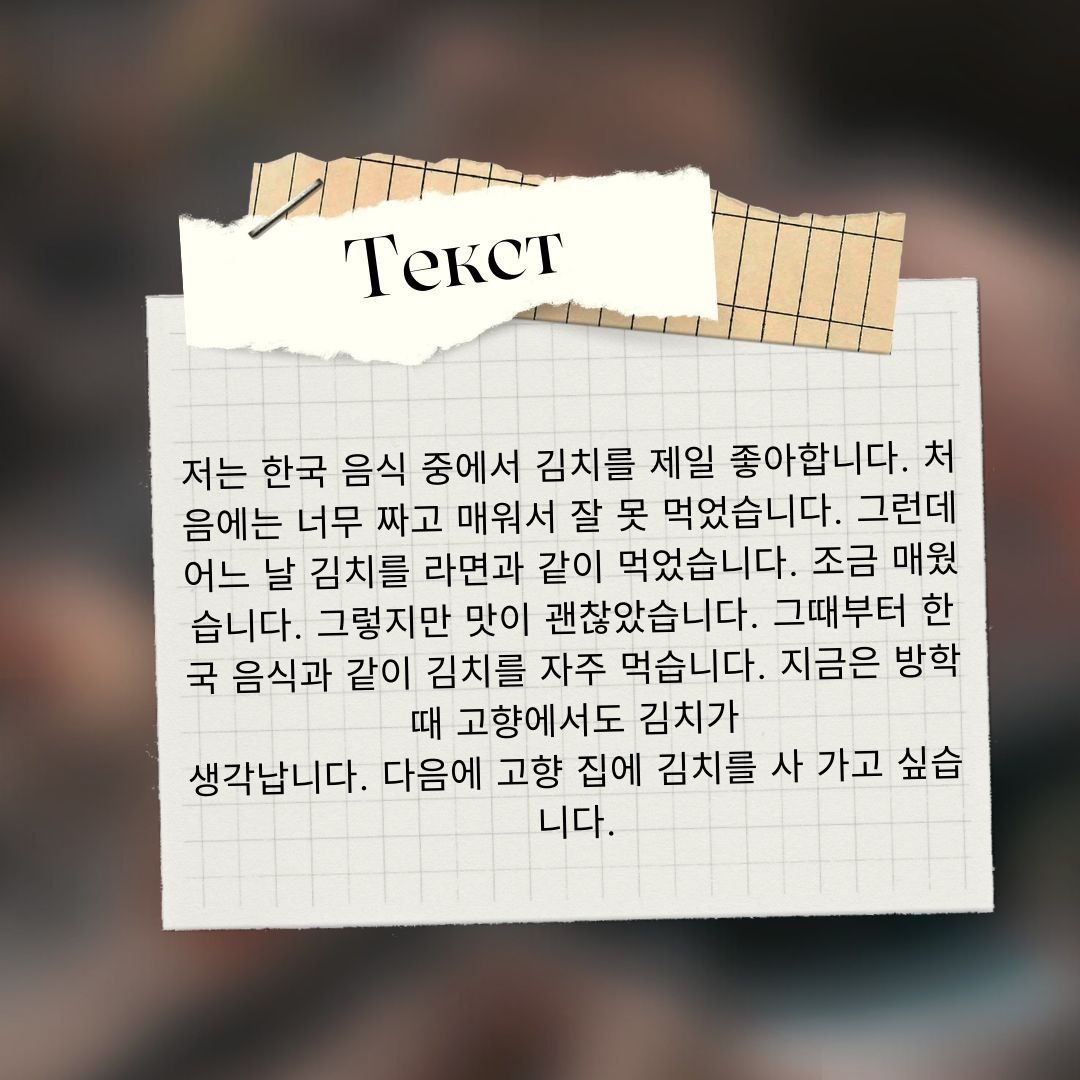 🖇️Лексика TOPIK I🖇️ 음식 - еда N + 중에서 - среди, посреди 제일 - самый, первичный 처음에는 - сначала 짜다 - соленый 맵다 - острый 그런데 - но 어느 날 - однажды 같이 - вместе 조금 - немного 그렇지만 - но, однако, все же 맛 - вкус 그때부터 - с тех пор 방학 - каникулы 고향 - родной город 생각나다 - вспоминать 다음에 - в следующий раз 사다 - покупать