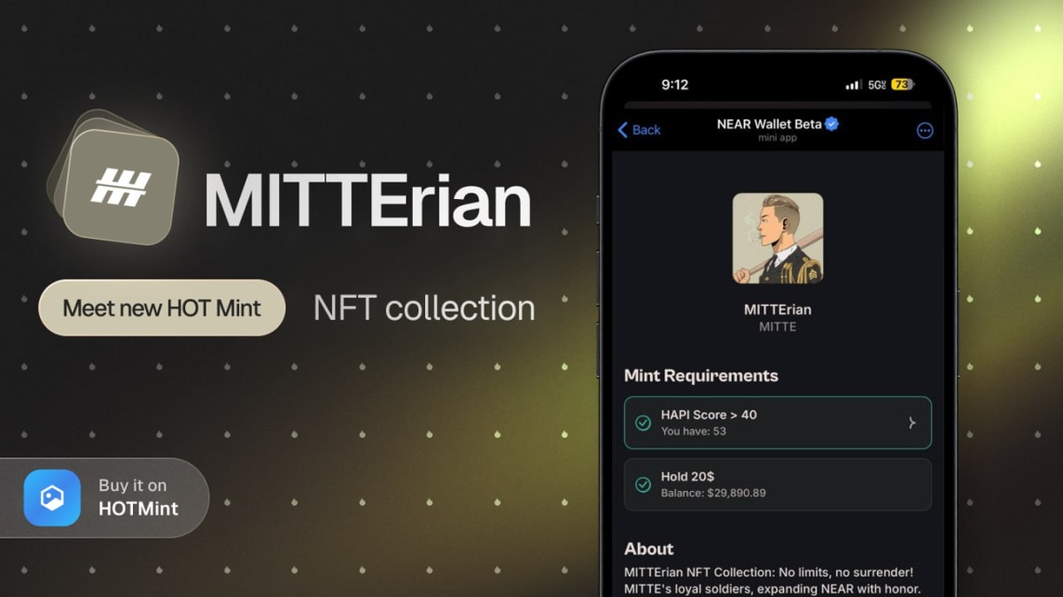 Новая НФТ коллекция на HOT Mint 🔥 MITTErian – официальная коллекция от Mitte В ближайшее время будет доступна в разделе HOT Mint Условия получения: ➡HAPI Score > 40 ➡Держать 20$ на вашем балансе Цена минта: 15 HOT 🔥 что немало, но учитывая, что выпущено всего 3000 NFT цена может себя оправдать. Проблема лишь в том успеем ли заминтить. Дата минта будет объявлена чуть позже. Канал в TG ________________________________________________________________________________________ Этот и другие проекты: Фармим PAWS (аналог DOGS) Майним HOT 🔥 Фармим Electra ⚡️ Фармим SECONDS 🕐 Фармим BLUM