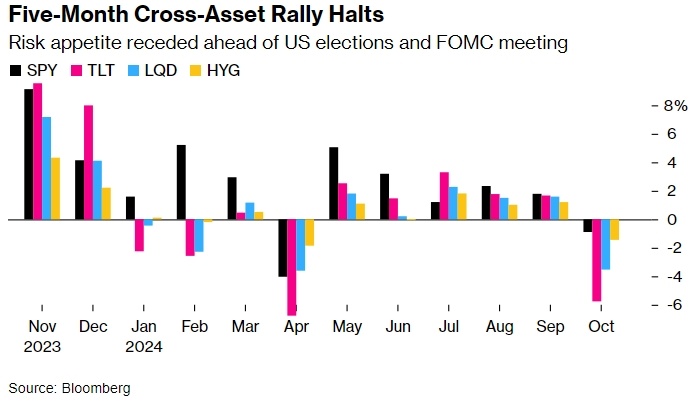 Пятимесячное ралли различных активов прекращается. Аппетит к риску снизился в преддверии выборов в США и заседания FOMC. Источник: Bloomberg