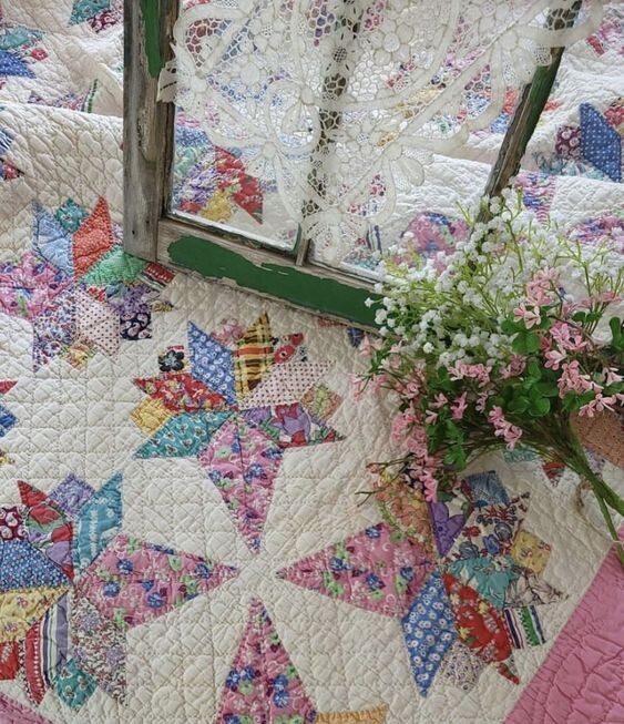 Когда мне встречалось одеяло с блоком, о котором сегодня расскажу, я думала, что это – рожок с мороженым. Оказалось, я так думала не одна: многие подписчики телеграм-канала тоже об этом написали. И все же, это не мороженое. Это «Букет невесты» - красивый, необычный, сложносочиненный. Есть и другие названия: «Букет цветов», «Бутоньерка» или даже «Мальчишеская нелепица». Этот узор был очень популярен в 30-40-х годах прошлого века несмотря на то, что его нельзя назвать простым в исполнении: много деталей, Y-образные швы. ‼️ В блоге «Энциклопедия лоскутных схем» (encyclopediaquiltpatterns.blogspot.com) нашла информацию, что скорее всего, этот блок впервые был напечатан в 1933 году в газете для фермеров «Сельский житель Нью-Йорка» (Rural New Yorker). По крайней мере, это самое раннее найденное упоминание. Там он назывался «Букет невесты» или «Весёлое одеяло». Мне «Букет невесты» очень понравился! Наряду со схемой «Двойное свадебное кольцо» это – классная идея для подарка на свадьбу. Сшить е