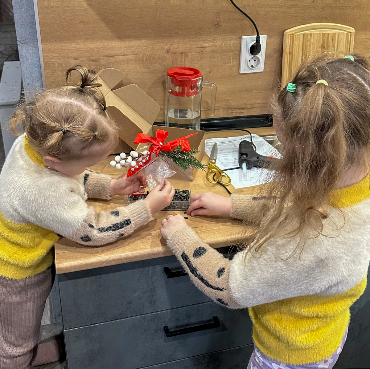 Мы поступили немного проще и заказали интересную кормушку на ВБ и вместе с девочками украсили ее.