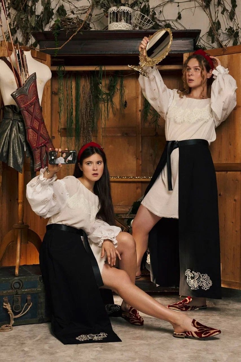 1.Beautiful Criminals выпустили коллекцию с онлайн-кинотеатром START в честь премьеры сериала «Последний богатырь. Наследие». (вчера только сериал с вами обсуждали). В капсульной коллекция: юбка-понева с вышивкой платье в стиле русской рубахи, джинсовая баска-латы и кокошники, конечно. В качестве моделей исполнительницы ролей дочерей Ивана.