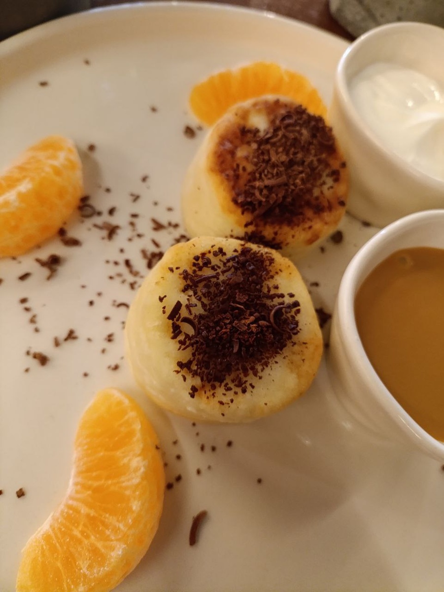 что я работаю в воскресенье! Спасибо, что это за офисом. Ну все поняли уже, я в восхищении! Сырники от Here'n'now! Here'n'now — классное место в центре города, затерявшееся во дворах, атмосфера спокойствия и отдыха. Странное место для всех. Сырники принесли молниеносно.