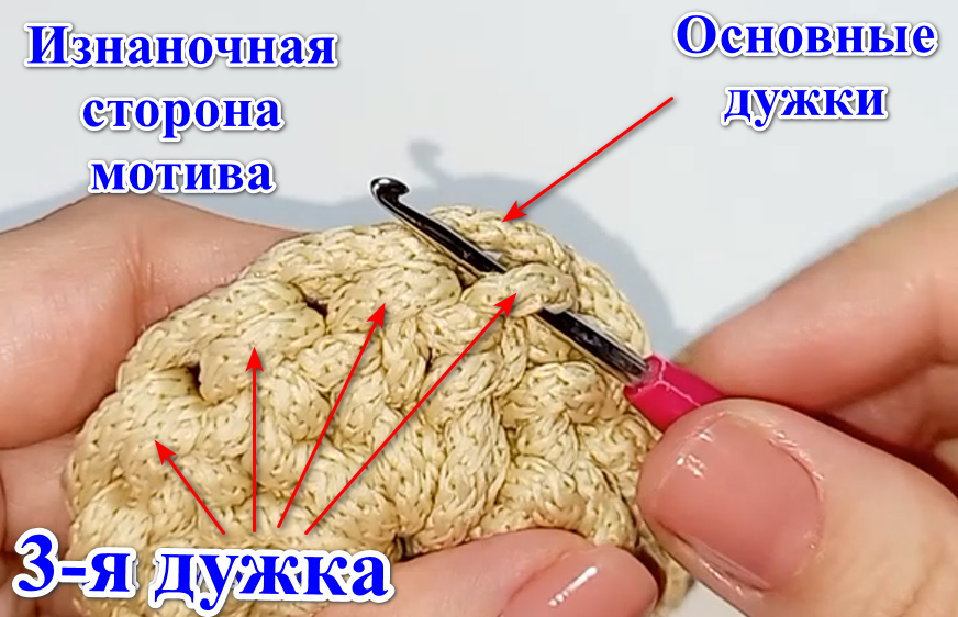 Но не только вязать можно за третью дужку, но еще и соединять мотивы между собой!