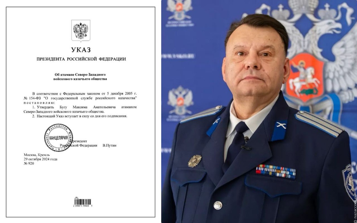 Президент Российской Федерации В.В. Путин 29 октября 2024 года подписал Указ «Об атамане Северо-Западного войскового казачьего общества». Атаманом созданного годом ранее Северо-Западного казачьего войска, дислокация которого практически полностью совпадает с дислокацией Ленинградского военного округа, назначен полковник Максим Буга. Штаб Северо-Западного казачьего войска (СЗВКО) будет находиться, исходя из геополитической ситуации, не в Калининграде, как предполагалось ранее, а в Санкт-Петербурге.