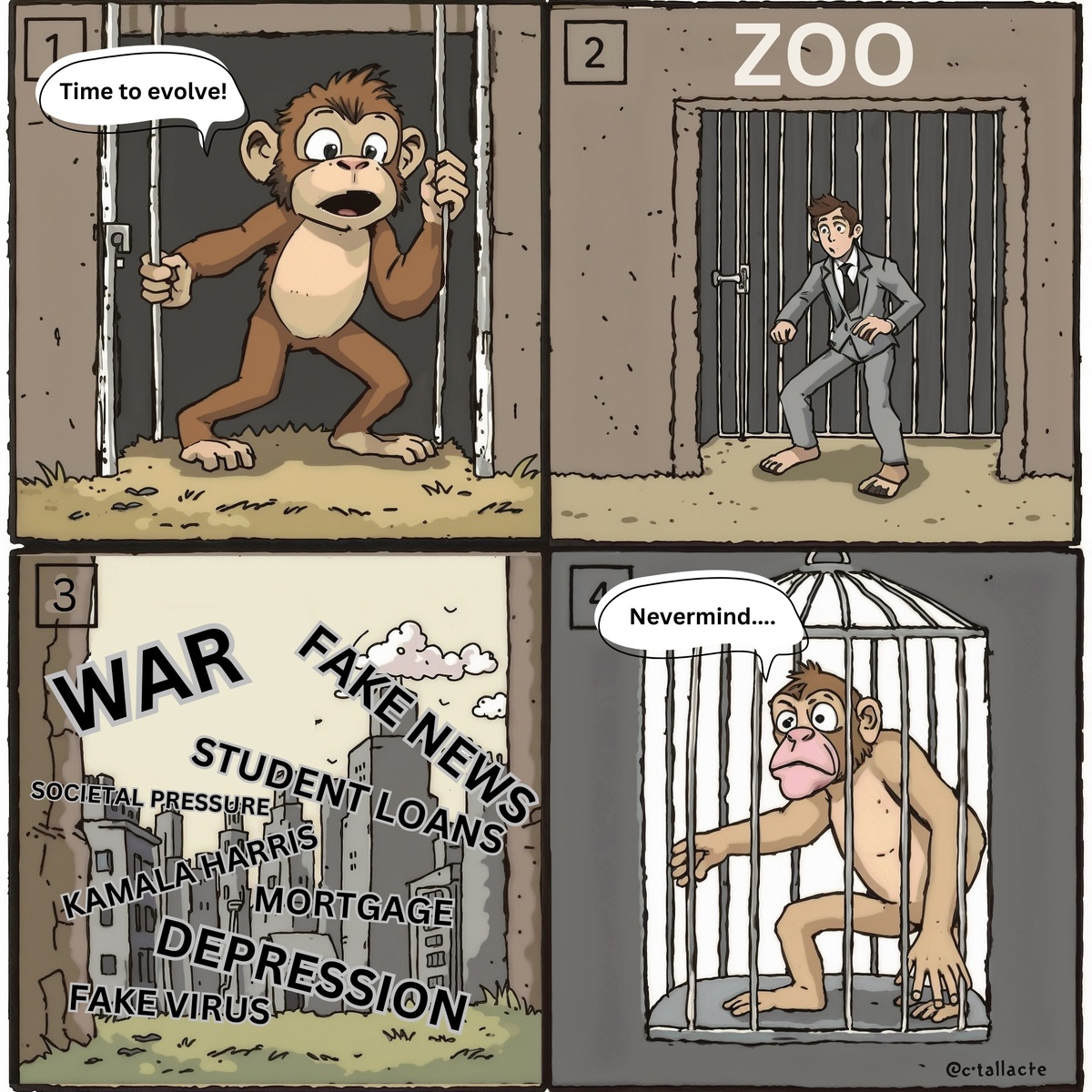«Биполярный стэнд-ап комик мечтает эволюционировать обратно в обезьяну, потому что верит, что животные счастливее людей.»