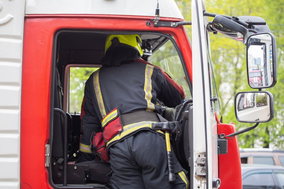 Двух человек эвакуировали в масках спасаемого из пожара в Воронежской области