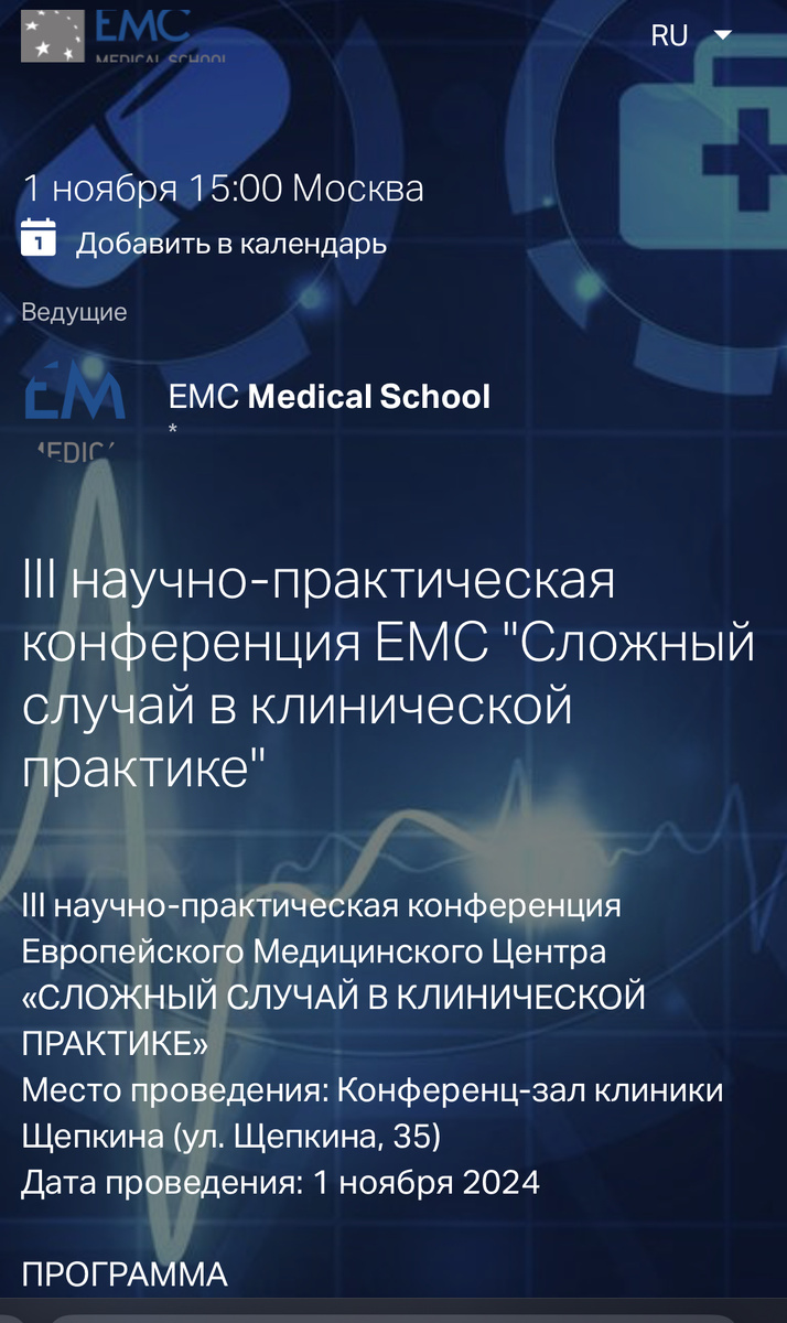 Но зато - у нас есть Медицинская Школа ЕМС. Это образовательная организация повышения квалификации, которая, в том числе, организует конференции для сотрудников ЕМС.