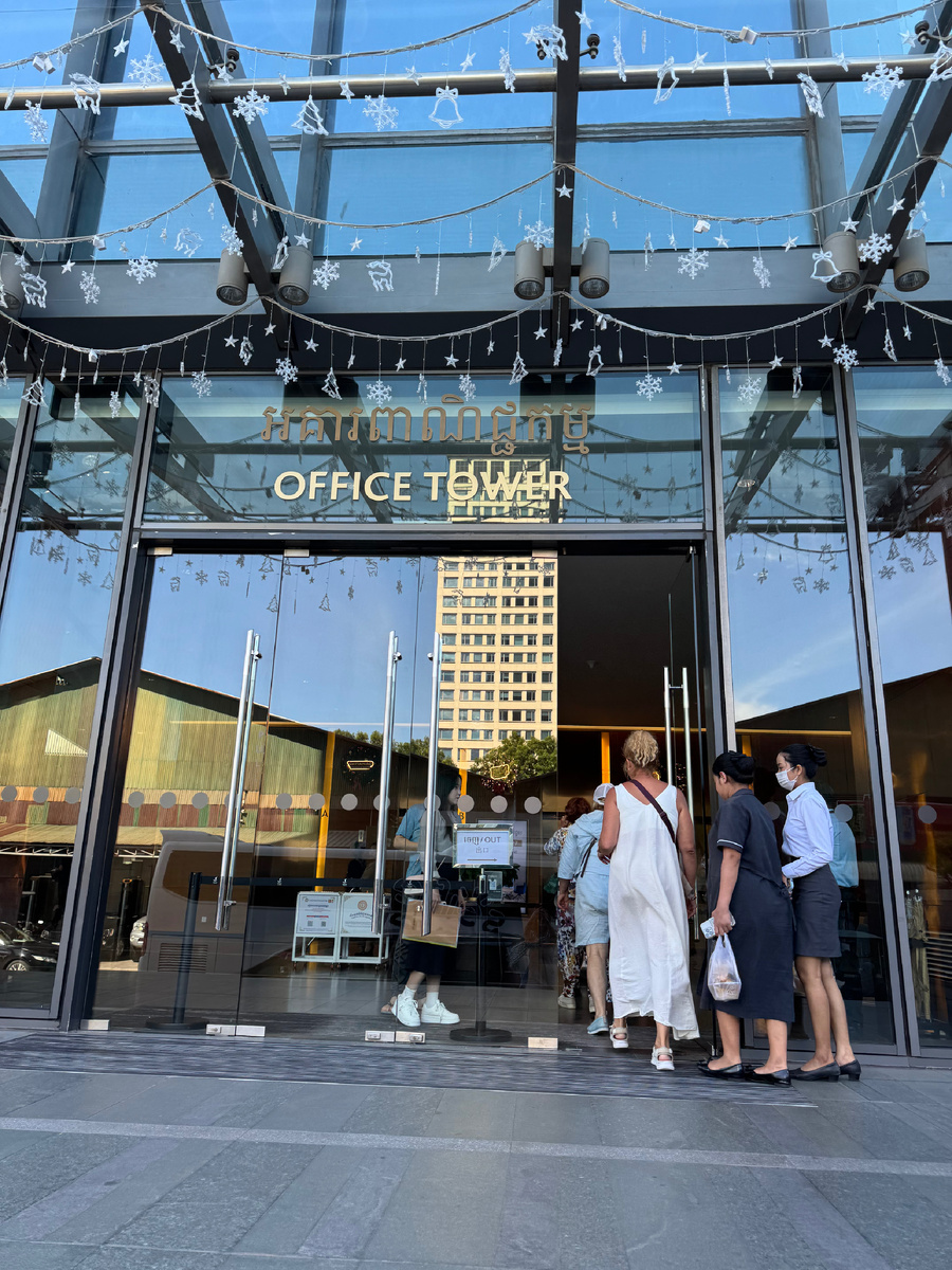Первым пунктом по программе была смотровая площадка, которая находится на 37 этаже бизнес-центра. Оттуда открывается вид на весь город и слияние двух рек - Меконг и Тонлесап.