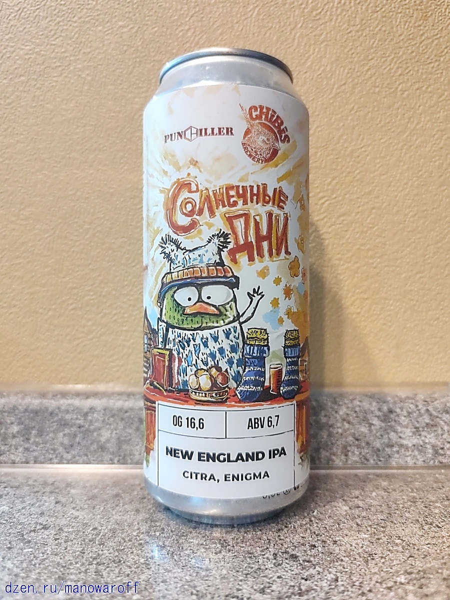 Под пиво "Солнечные дни", которое сварено московской пивоварней Chibis Brewery совместно с минскими пивоварами из Punchiller. Сорт достаточно новый - на данный момент это последнее чибисовское пиво в стиле NEIPA. Появился в октябре нынешнего года. Вот что на рассказывают о нем маркетологи: Как быстро канули в Лету очередные 92 прекрасных летних дня из нашей жизни. Пролетели, как обычно, на одном дыхании.