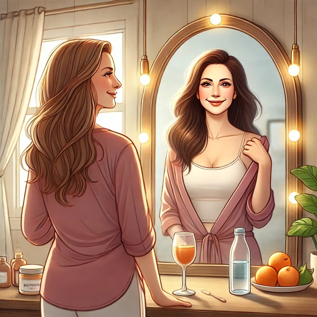И вот перед ней возник образ другой Юли — той, которая выбрала заботу о себе. Она выглядела свежей, наполненной жизнью. Кожа сияла, улыбка стала искренней и доброй. Эта Юля была старше, но мудрее и увереннее. Она излучала спокойствие и гармонию, а её глаза были наполнены светом. Именно такой Юля хотела быть.