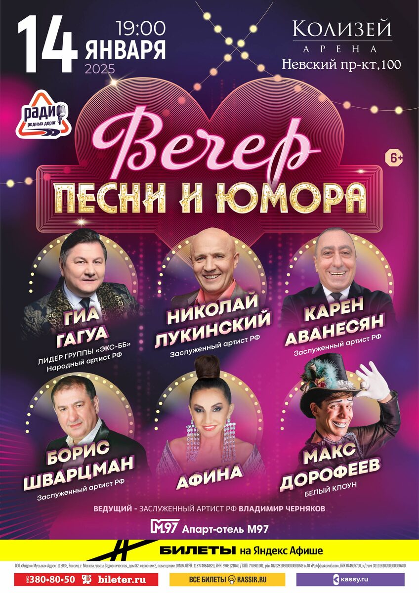 Вечер песни и юмора! 14 января! Санкт-Петербург! К/З "Колизей Арена", Невский пр. 100
