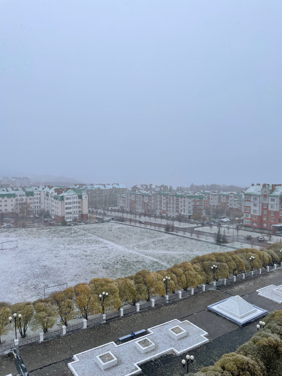 У нас тут снег вчера, 1 ноября, выпал неожиданно. Фото ниже сделано в обед.