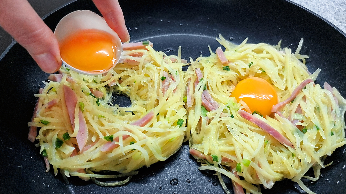 Если стоит вопрос "что приготовить на ужин", то этот рецепт - отличная идея для решения такой проблемы. Приготовить блюдо из картофеля по этому рецепту быстро и легко, а результат вас приятно удивит! Особенно это блюдо нравится детям своим необычным видом: это уже не просто яичница, а "гнездышки" с яйцом.